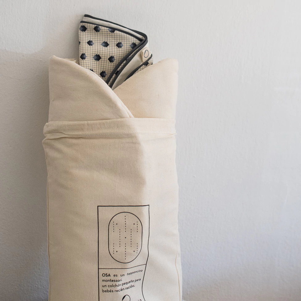 Cada OSA incluye: Un colchón, una funda y una bolsa protectora de lienzo. Una postal para dedicatorias y un manual de uso digital.